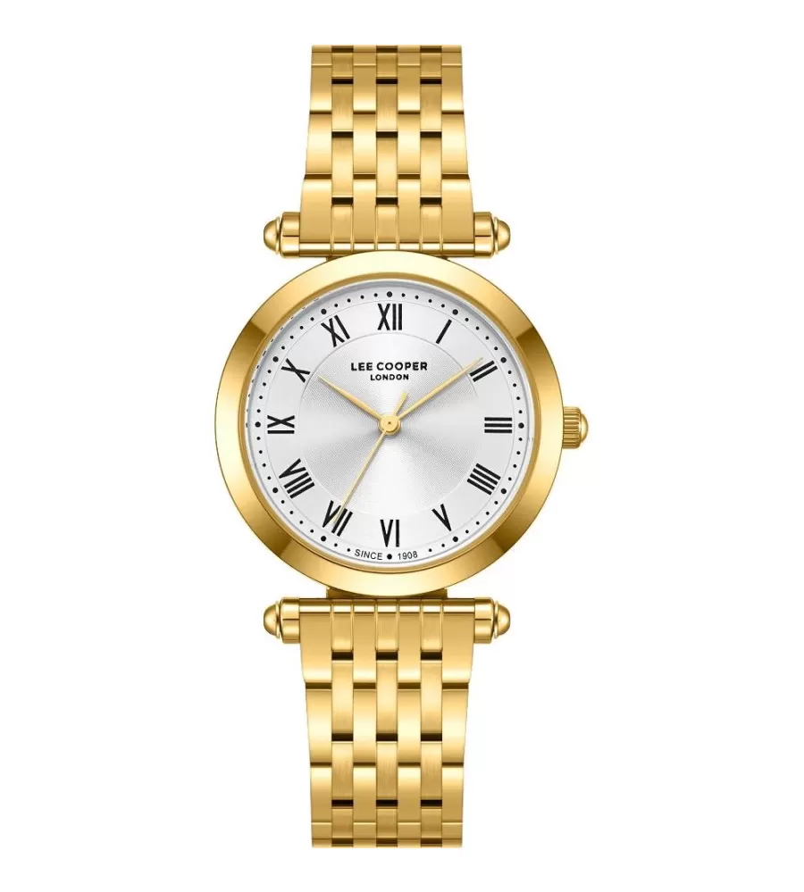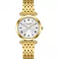 Veľmi elegantný model dámskych náramkových hodiniek je vyrobený z kvalitného kovu s pozlátením žltým zlatom. Veľmi sofistikovaný vzhľad podčiarkuje dizajn púzdra s priemerom 32 mm a ciferníka s rímskymi číslicami. Tento model zaujme na spoločenských udalostiach, ale je vhodný aj na každodenné nosenie. Vďaka bezpečnému zapínaniu budú hodinky perfektne držať na každom zápästí.