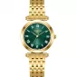 Veľmi elegantný model dámskych náramkových hodiniek je vyrobený z kvalitného kovu s pozlátením žltým zlatom. Veľmi sofistikovaný vzhľad podčiarkuje dizajn púzdra s priemerom 32 mm a ciferníka s rímskymi číslicami. Tento model zaujme na spoločenských udalostiach, ale je vhodný aj na každodenné nosenie. Vďaka bezpečnému zapínaniu budú hodinky perfektne držať na každom zápästí.