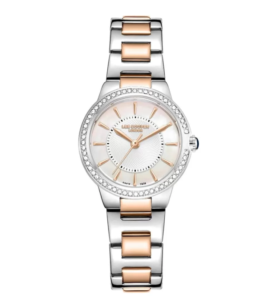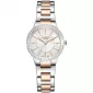 Dámske náramkové hodinky v klasickom dizajne sú vyrobené z kvalitného kovu v striebornom prevedení. Na niektorých miestach je strojček a puzdro PVD ošetrené vo farbe ružového zlata. Hodinky majú hladké puzdro, ktoré je osadené čírymi kamienkami pre umocnenie vášho šarmu. Hodinky sú vodotesné a vhodné na každodenné nosenie.