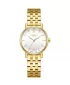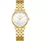 Dámske náramkové hodinky sú vyrobené z kvalitného kovu, ktorý je upravený PVD povrchovou úpravou vo farbe žltého zlata. Okrúhle puzdro s priemerom 30 mm je odolné voči vlhkosti. Ciferník v decentnom prevedení je veľmi prehľadný a praktický. Hodinky sú zaistené bezpečnostnou sponou.