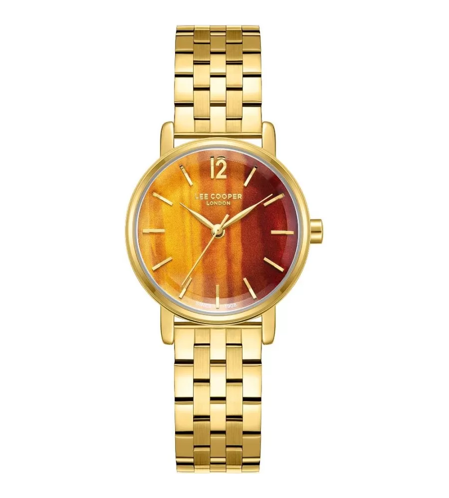 Dámske náramkové hodinky sú vyrobené z kvalitného kovu, ktorý je upravený PVD povrchovou úpravou vo farbe žltého zlata. Okrúhle puzdro s priemerom 30 mm je odolné voči vlhkosti. Ciferník vo výraznom dizajne je veľmi prehľadný a praktický. Hodinky sú zaistené bezpečnostnou sponou.