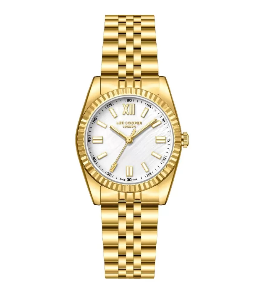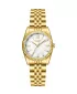 Dámske náramkové hodinky sú vyrobené z kvalitného kovu, ktorý je upravený PVD povrchovou úpravou vo farbe žltého zlata. Okrúhle puzdro s priemerom 30 mm je odolné voči vlhkosti. Ciferník v decentnom prevedení je veľmi prehľadný a praktický. Hodinky sú zaistené bezpečnostnou sponou.