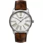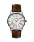 Prvotriedne materiály a prvotriedny dizajn vám ponúka tento model. Dámske náramkové hodinky majú okrúhle puzdro vyrobené z kvalitnej nehrdzavejúcej ocele. Puzdro je vybavené švajčiarskym strojčekom Ronda 715 a batériou s dvojročnou výdržou. Hnedé rímske číslice a tenké hodinové ručičky dokonale kontrastujú s bielym ciferníkom. Dátum je umiestnený na pozícii tretej hodiny. Celý dizajn dopĺňa kožený remienok hnedej farby, kvalitné prešívanie na bokoch.