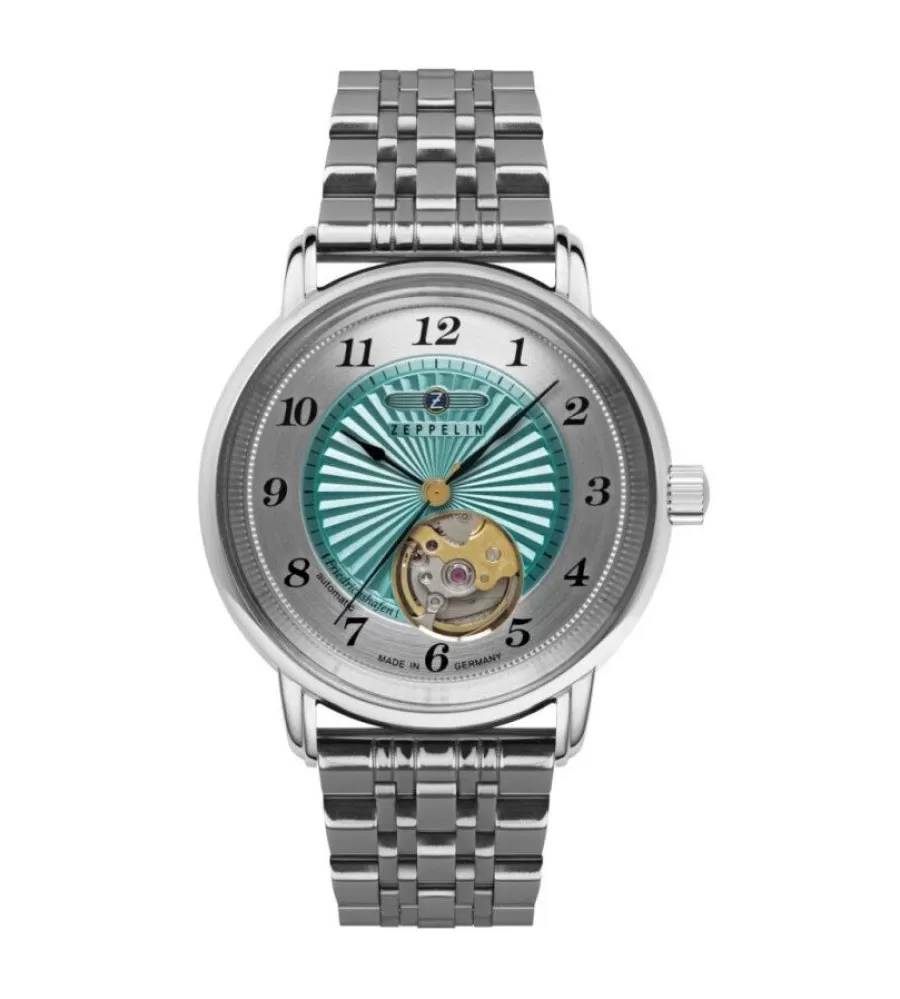 Hodinky Zeppelin Friedrichshafen Automatic 8569M-4 sú elegantný dámsky model s jemným a nadčasovým dizajnom inšpirovaným leteckou históriou. Majú puzdro aj náramok z nerezovej ocele 316L, ktoré zaisťujú vysokú odolnosť, pevnosť a dlhú životnosť. Priemer puzdra 36 mm pôsobí decentne a veľmi pohodlne na zápästie. Prehľadný ciferník s funkciou open heart umožňuje pohľad na pracujúci strojček a dodáva hodinkám luxusný mechanický charakter. Minerálne sklíčko chráni ciferník pred bežným poškriabaním.