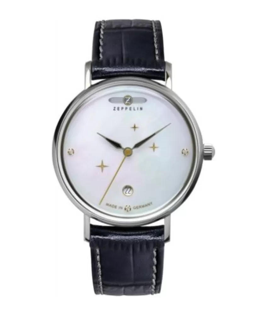 Hodinky Zeppelin 7131-3 predstavujú dokonalé spojenie elegancie a precíznej nemeckej remeselnej zručnosti, určené predovšetkým moderným ženám, ktoré ocenia sofistikovaný vzhľad a spoľahlivosť pri každodennom nosení. Tento model zo série Luna sa vyznačuje perleťovým ciferníkom s jemnými indexmi a zdobením kameňom Swarovski, ktoré hodinkám dodáva luxusný a slávnostný nádych. Okrúhle oceľové puzdro s priemerom 36 mm a výškou 10 mm je elegantné, no zároveň dostatočne robustné, aby vydržalo každodenné používanie.