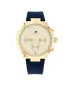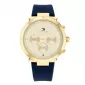 Dámske hodinky sú ideálnym doplnkom pre ženy, ktoré si potrpia na štýlové a zároveň kvalitné doplnky. Zlatý ciferník upúta tromi chronografmi s funkciou dátumu, dňa v týždni a 24h ciferníkom, nechýbajú ani trblietavé kamienky. Puzdro je vyrobené z ušľachtilej ocele a pozlátenie vytvára skutočne luxusný dojem. Na zápästie si hodinky pripnete príjemným silikónovým remienkom. Doprajte si dizajnové hodinky Tommy Hilfiger, s ktorými budete stredobodom pozornosti len vy.