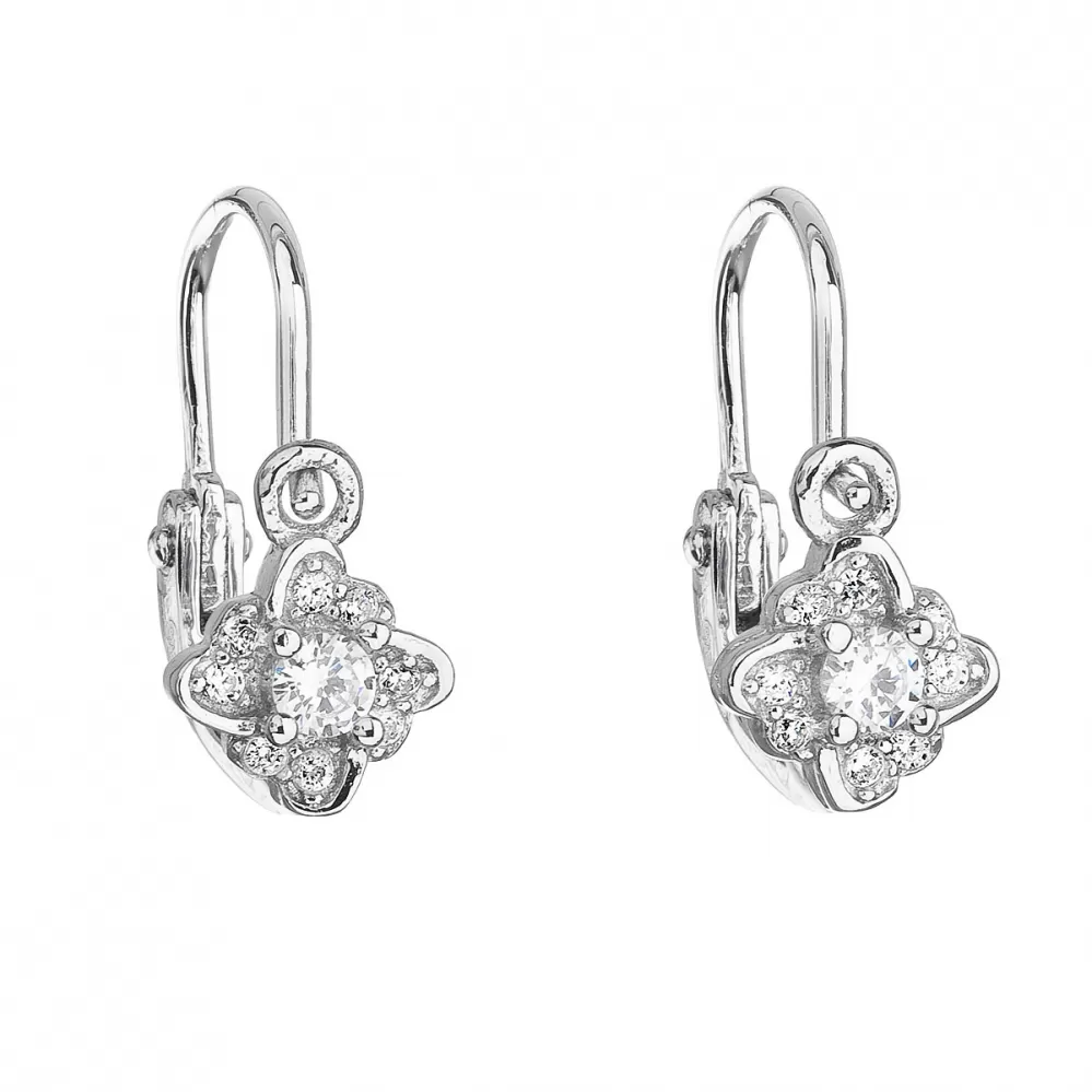 Parametre strieborných detských visiacich náušníc so zirkónom biela kvietka 11175.1
