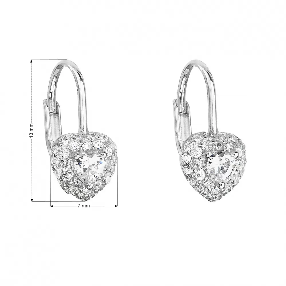 Parametre strieborných detských visiacich náušníc so zirkónom biele srdce 11216.1