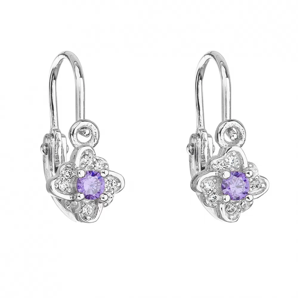 Strieborné detské náušnice visiace so zirkónom fialová kvietka 11175.3