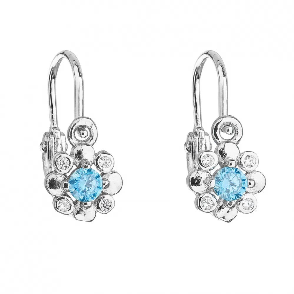 Strieborné detské náušnice visiace so zirkónom modrá kytička 11174.3