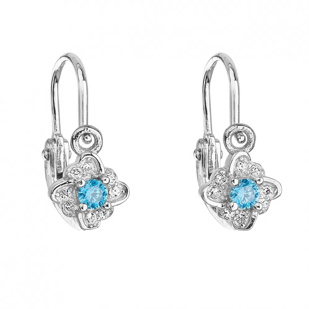 Strieborné detské náušnice visiace so zirkónom modrá kytička 11175.3