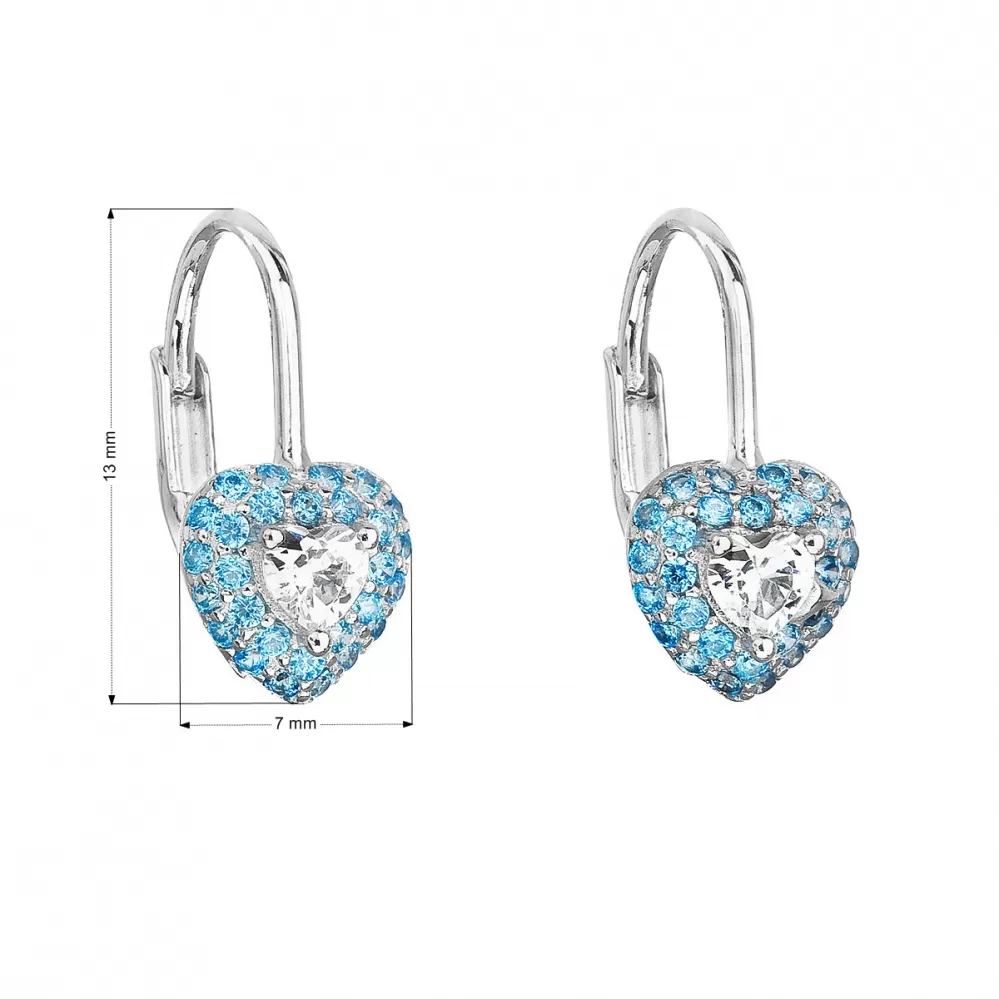 Parametre strieborných detských visiacich náušníc so zirkónom modré srdce 11216.3