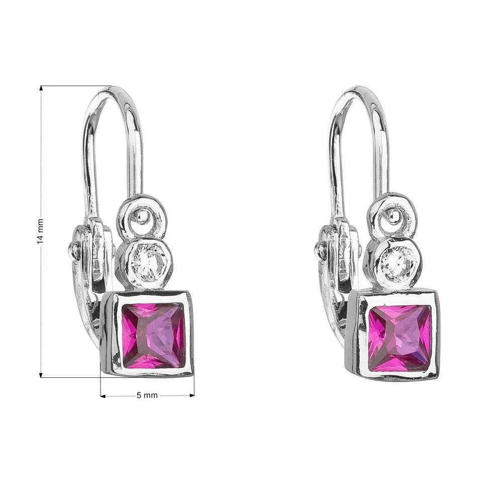 Parametre strieborných detských visiacich náušníc so zirkónom ružová kocka 11172.3