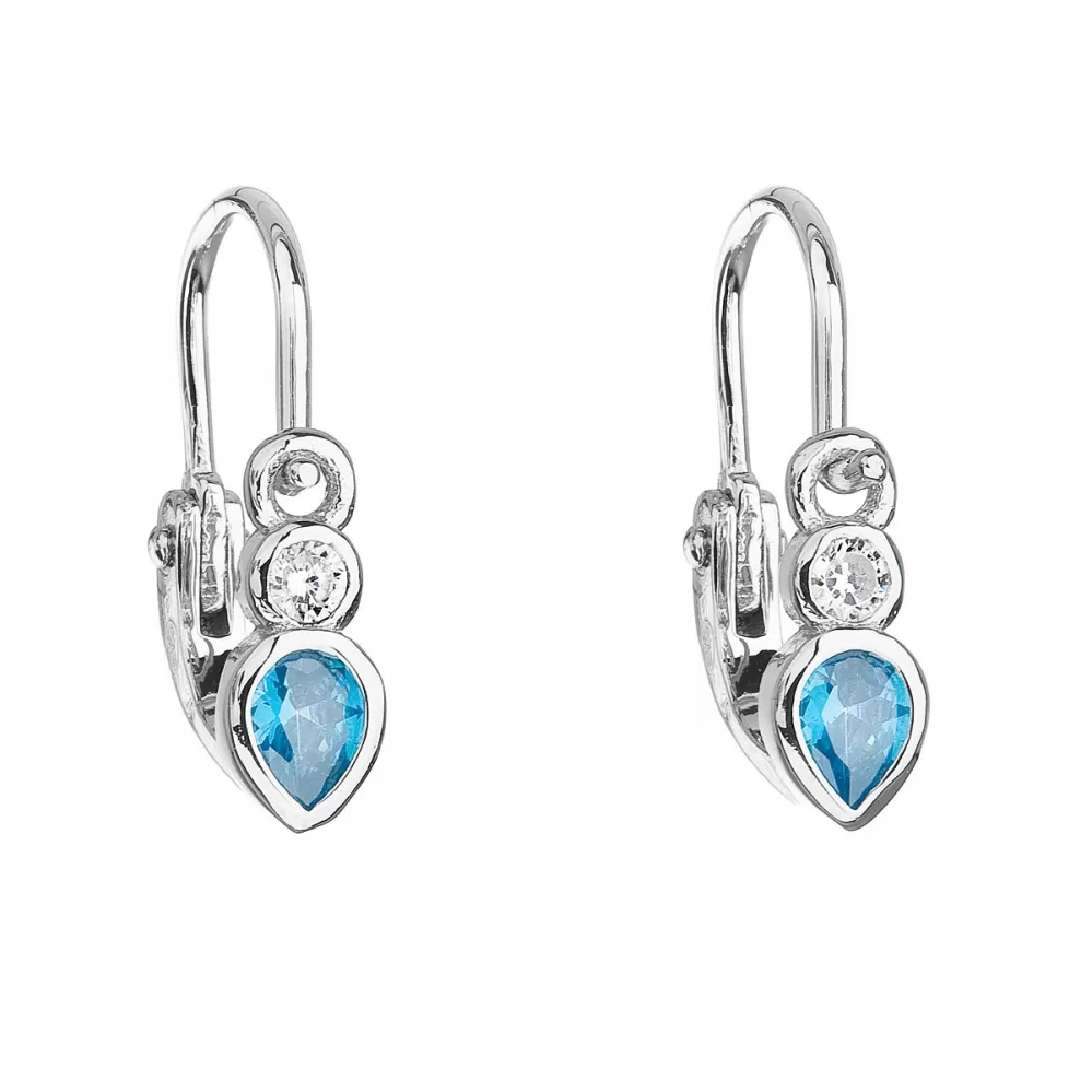 Strieborné detské náušnice visiace so zirkónom v modrej farbe 11197.3