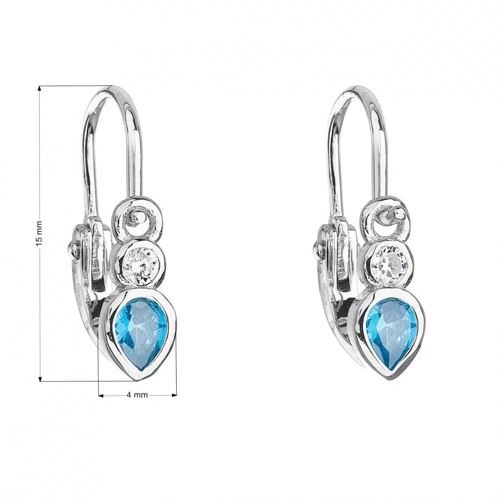 Parametre strieborných detských visiacich náušníc so zirkónom v modrej farbe 11197.3