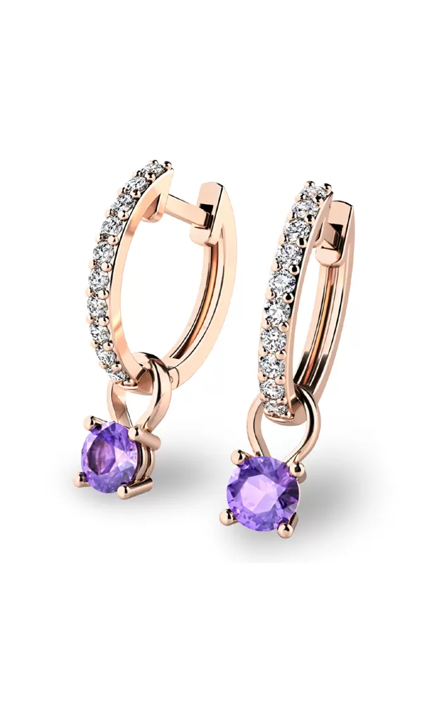 Kruhové náušnice patří mezi velmi oblíbený šperk. Náušnice jsou vhodné pro každodenní nošení i na společenské akce a sluší každé ženě. Tento model je zdoben dvaceti diamanty a dvěma tanzanity vsazenými do přívěsků. Všechny kameny jsou v briliantovém brusu, díky kterému dokonale odráží světlo a neuvěřitelné září. Vsazování diamantů a drahých kamenů provádějí naši nejzkušenější mistři zlatníci ručně pod mikroskopem s přesností na 0,01mm a proto nehrozí vypadnutí kamínků jako to bývá u strojně vyráběných náušnic. Tyto nádherné náušnice jsou vyrobeny z růžového čtrnáctikarátového zlata - 585/1000 v lesklé povrchové úpravě.