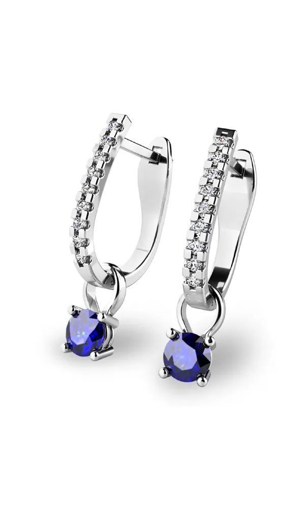 Dámske náušnice biele zlato 585/1000 prírodný diamant 0,50 ct G/SI so zafírmi 10862-B-DIA-SAF
