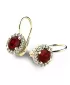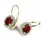 Nádherné luxusní dámské náušnice osázené středovým granátem a diamanty budou ideálním dárkem pro každou ženu. Náušnice jsou vyrobeny ze žlutého čtrnáctikarátového zlata - 585/1000 v lesklé povrchové úpravě. Vsazené diamanty jsou vybroušeny dokonalým briliantovým brusem, díky kterému dokonale odráží světlo a jejich brilance neuvěřitelné září z každého úhlu pohledu! Všechny kameny jsou pevně uchyceny krapnami. Vsazování diamantů a drahých kamenů provádějí naši nejzkušenější mistři zlatníci ručně pod mikroskopem s přesností na 0,01mm a proto nehrozí vypadnutí kamínků jako to bývá u strojně vyráběných náušnic. Celé náušnice působí dokonalým a luxusním dojmem!