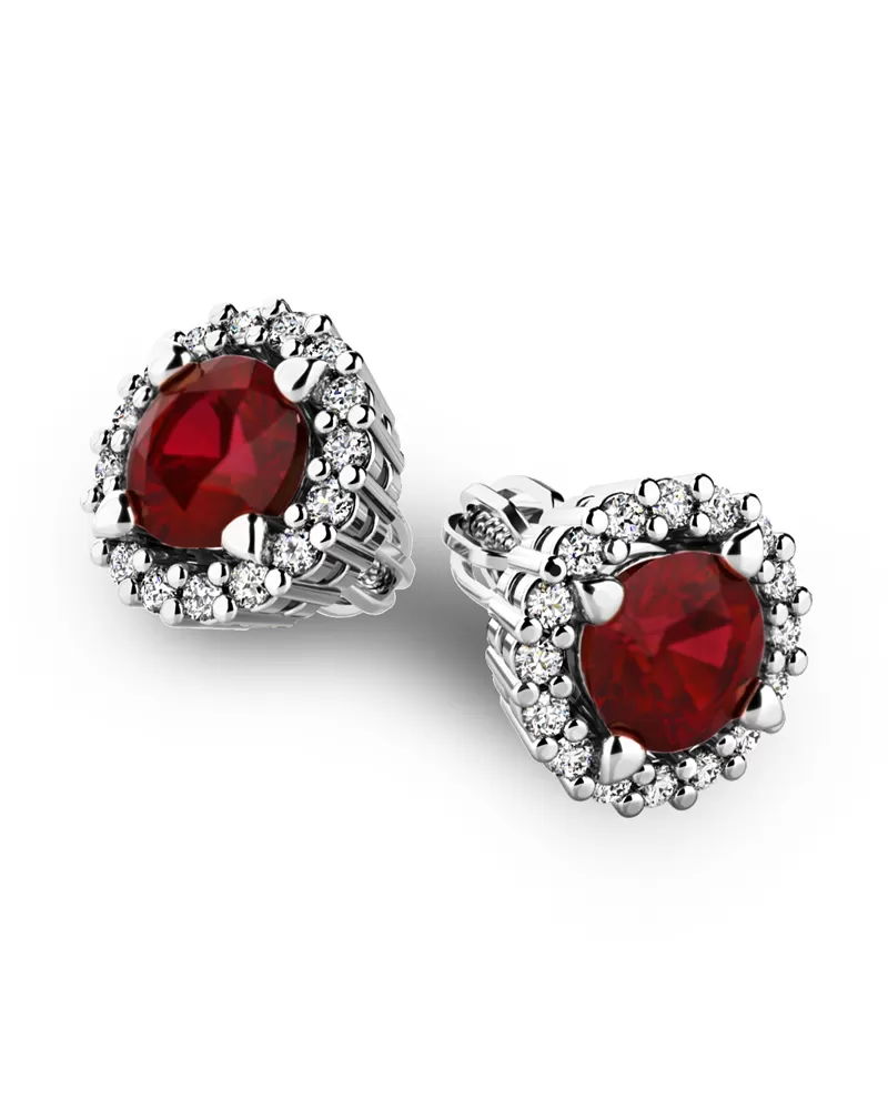 Nádherné luxusní dámské náušnice pecky osázené středovým granátem a diamanty budou ideálním dárkem pro každou ženu. Náušnice jsou vyrobeny z bílého čtrnáctikarátového zlata - 585/1000 v lesklé povrchové úpravě. Vsazené diamanty jsou vybroušeny dokonalým briliantovým brusem, díky kterému dokonale odráží světlo a jejich brilance neuvěřitelné září z každého úhlu pohledu!  Všechny kameny jsou pevně uchyceny krapnami. Vsazování diamantů a drahých kamenů provádějí naši nejzkušenější mistři zlatníci ručně pod mikroskopem s přesností na 0,01mm a proto nehrozí vypadnutí kamínků jako to bývá u strojně vyráběných náušnic. Celé náušnice působí dokonalým a luxusním dojmem! Náušnice se zapínají na šroubek. Šroubek pro balónek je umístěný cca 2 mm pod horní okraj náušnice a tedy krásně zakrývá dírku v uchu.