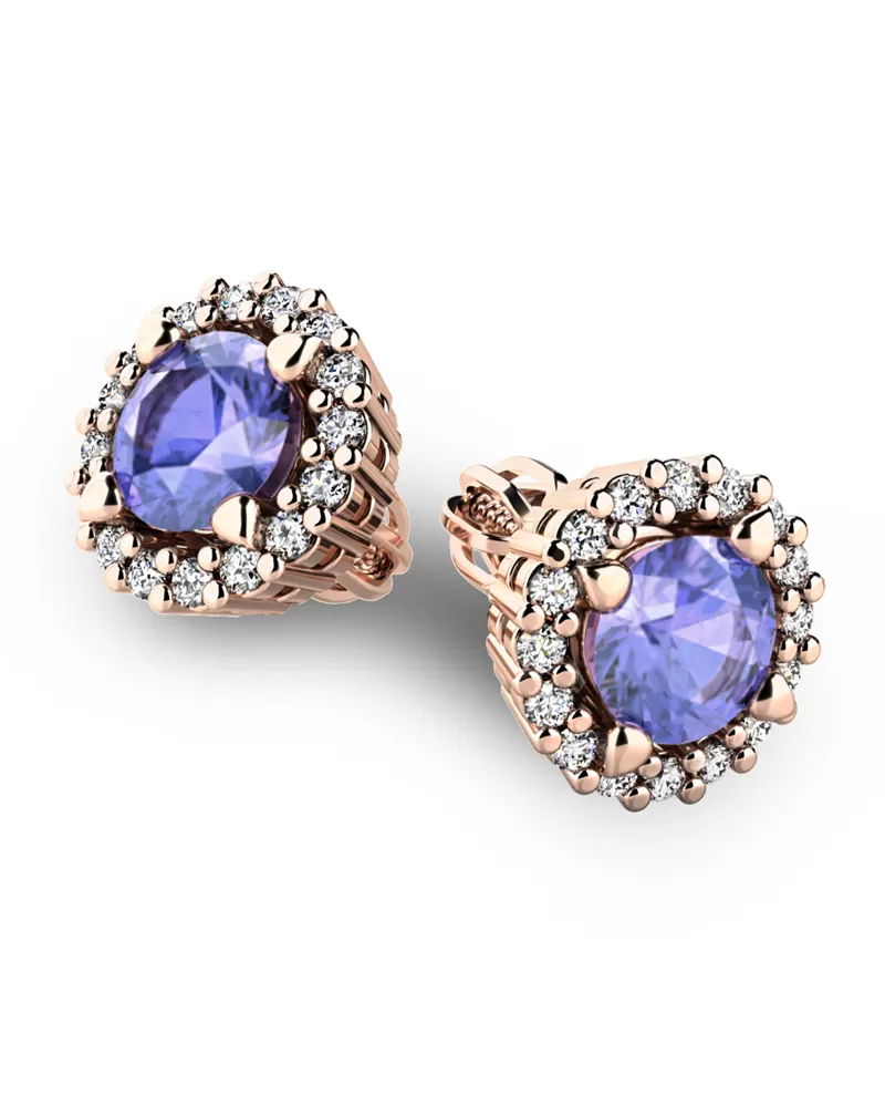 Nádherné luxusní dámské náušnice pecky osázené středovým tanzanitem a diamanty budou ideálním dárkem pro každou ženu. Náušnice jsou vyrobeny z růžového čtrnáctikarátového zlata - 585/1000 v lesklé povrchové úpravě. Vsazené diamanty jsou vybroušeny dokonalým briliantovým brusem, díky kterému dokonale odráží světlo a jejich brilance neuvěřitelné září z každého úhlu pohledu!  Všechny kameny jsou pevně uchyceny krapnami. Vsazování diamantů a drahých kamenů provádějí naši nejzkušenější mistři zlatníci ručně pod mikroskopem s přesností na 0,01mm a proto nehrozí vypadnutí kamínků jako to bývá u strojně vyráběných náušnic. Celé náušnice působí dokonalým a luxusním dojmem! Náušnice se zapínají na šroubek. Šroubek pro balónek je umístěný cca 2 mm pod horní okraj náušnice a tedy krásně zakrývá dírku v uchu.