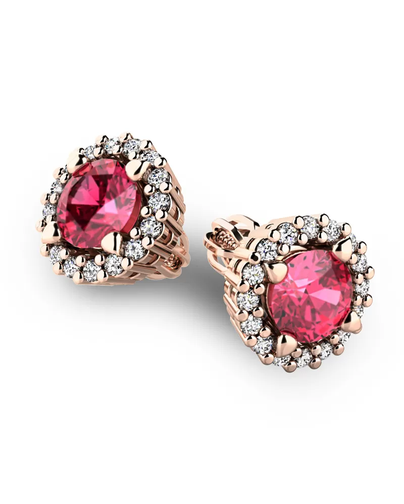 Nádherné luxusní dámské náušnice pecky osázené středovým turmalínem a diamanty budou ideálním dárkem pro každou ženu. Náušnice jsou vyrobeny z růžového čtrnáctikarátového zlata - 585/1000 v lesklé povrchové úpravě. Vsazené diamanty jsou vybroušeny dokonalým briliantovým brusem, díky kterému dokonale odráží světlo a jejich brilance neuvěřitelné září z každého úhlu pohledu! Všechny kameny jsou pevně uchyceny krapnami. Vsazování diamantů a drahých kamenů provádějí naši nejzkušenější mistři zlatníci ručně pod mikroskopem s přesností na 0,01mm a proto nehrozí vypadnutí kamínků jako to bývá u strojně vyráběných náušnic. Celé náušnice působí dokonalým a luxusním dojmem! Náušnice se zapínají na šroubek. Šroubek pro balónek je umístěný cca 2 mm pod horní okraj náušnice a tedy krásně zakrývá dírku v uchu.
