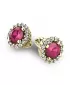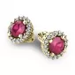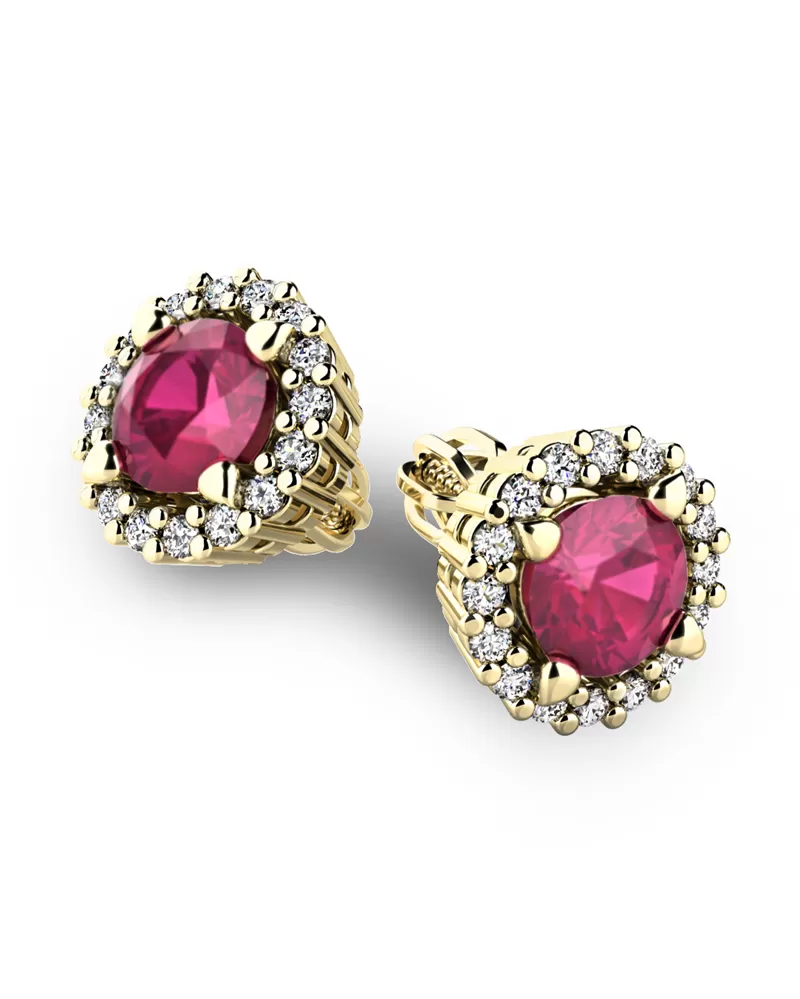Nádherné luxusní dámské náušnice pecky osázené středovým rubínem a diamanty budou ideálním dárkem pro každou ženu. Náušnice jsou vyrobeny ze žlutého čtrnáctikarátového zlata - 585/1000 v lesklé povrchové úpravě. Vsazené diamanty jsou vybroušeny dokonalým briliantovým brusem, díky kterému dokonale odráží světlo a jejich brilance neuvěřitelné září z každého úhlu pohledu! Všechny kameny jsou pevně uchyceny krapnami. Vsazování diamantů a drahých kamenů provádějí naši nejzkušenější mistři zlatníci ručně pod mikroskopem s přesností na 0,01mm a proto nehrozí vypadnutí kamínků jako to bývá u strojně vyráběných náušnic. Celé náušnice působí dokonalým a luxusním dojmem! Náušnice se zapínají na šroubek. Šroubek pro balónek je umístěný cca 2 mm pod horní okraj náušnice a tedy krásně zakrývá dírku v uchu.