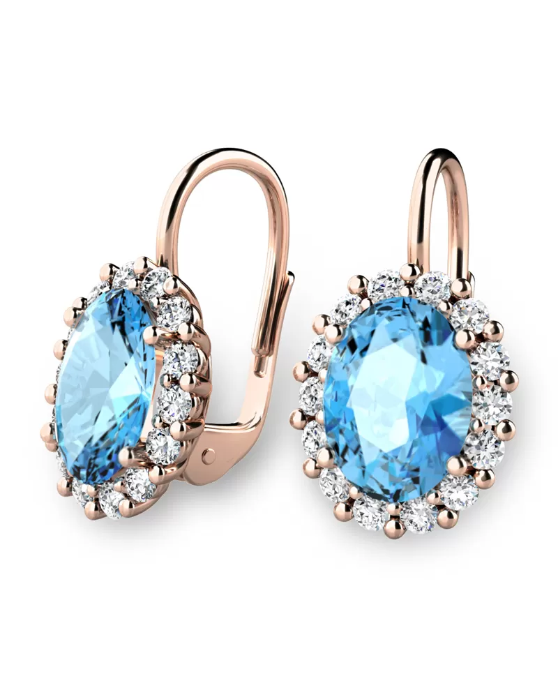 Nádherné luxusní dámské náušnice osázené středovým topazem a diamanty budou ideálním dárkem pro každou ženu. Náušnice jsou vyrobeny z růžového čtrnáctikarátového zlata - 585/1000 v lesklé povrchové úpravě. Vsazené diamanty jsou vybroušeny dokonalým briliantovým brusem, díky kterému dokonale odráží světlo a jejich brilance neuvěřitelné září z každého úhlu pohledu! Všechny kameny jsou pevně uchyceny krapnami. Vsazování diamantů a drahých kamenů provádějí naši nejzkušenější mistři zlatníci ručně pod mikroskopem s přesností na 0,01mm a proto nehrozí vypadnutí kamínků jako to bývá u strojně vyráběných náušnic. Celé náušnice působí dokonalým a luxusním dojmem!