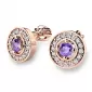 Náušnice ružové zlato 585/1000, prírodné diamanty a ametysty, 10921-CV-AME