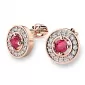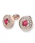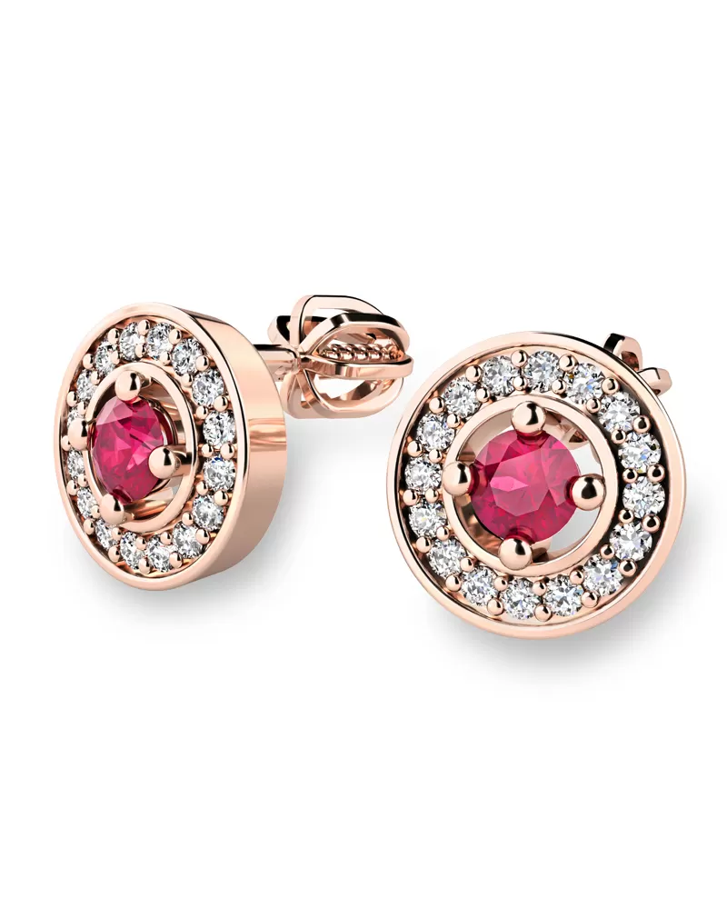 Nádherné luxusné dámske náušnice kôstky vysadené stredovým rubínom a diamantmi budú ideálnym darčekom pre každú ženu. Náušnice sú vyrobené z ružového štrnásťkarátového zlata - 585/1000 v lesklej povrchovej úprave. Vsadené diamanty sú vybrúsené dokonalým briliantovým brusom, vďaka ktorému dokonale odráža svetlo a ich brilancia neuveriteľné žiari z každého uhla pohľadu! Všetky kamene sú pevne uchytené krapnami. Vsadzovanie diamantov a drahých kameňov vykonávajú naši najskúsenejší majstri zlatníci ručne pod mikroskopom s presnosťou na 0,01 mm a preto nehrozí vypadnutie kamienkov ako to býva u strojne vyrábaných náušníc. Celé náušnice pôsobia dokonalým a luxusným dojmom! Náušnice sa zapínajú na skrutku. Skrutka na balónik je umiestnená cca 2 mm pod horný okraj náušnice a teda krásne zakrýva dierku v uchu.