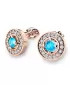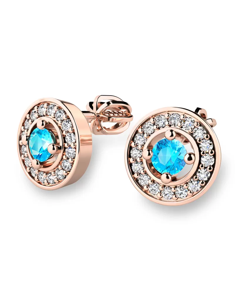 Nádherné luxusné dámske náušnice kôstky vysadené stredovým topazom a diamantmi budú ideálnym darčekom pre každú ženu. Náušnice sú vyrobené z ružového štrnásťkarátového zlata - 585/1000 v lesklej povrchovej úprave. Vsadené diamanty sú vybrúsené dokonalým briliantovým brusom, vďaka ktorému dokonale odráža svetlo a ich brilancia neuveriteľné žiari z každého uhla pohľadu! Všetky kamene sú pevne uchytené krapnami. Vsadzovanie diamantov a drahých kameňov vykonávajú naši najskúsenejší majstri zlatníci ručne pod mikroskopom s presnosťou na 0,01 mm a preto nehrozí vypadnutie kamienkov ako to býva u strojne vyrábaných náušníc. Celé náušnice pôsobia dokonalým a luxusným dojmom! Náušnice sa zapínajú na skrutku. Skrutka na balónik je umiestnená cca 2 mm pod horný okraj náušnice a teda krásne zakrýva dierku v uchu.
