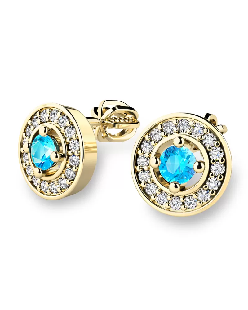 Náušnice žlté zlato 585/1000, prírodné diamanty a topazy, 10921-ZL-TPZ