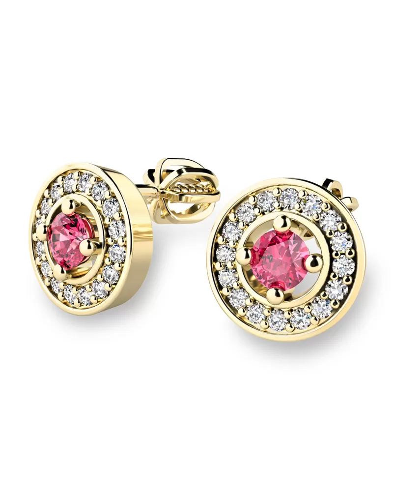 Nádherné luxusné dámske náušnice kôstky vysadené stredovým turmalínom a diamantmi budú ideálnym darčekom pre každú ženu. Náušnice sú vyrobené zo žltého štrnásťkarátového zlata - 585/1000 v lesklej povrchovej úprave. Vsadené diamanty sú vybrúsené dokonalým briliantovým brusom, vďaka ktorému dokonale odráža svetlo a ich brilancia neuveriteľné žiari z každého uhla pohľadu!  Všetky kamene sú pevne uchytené krapnami. Vsadzovanie diamantov a drahých kameňov vykonávajú naši najskúsenejší majstri zlatníci ručne pod mikroskopom s presnosťou na 0,01 mm a preto nehrozí vypadnutie kamienkov ako to býva u strojne vyrábaných náušníc. Celé náušnice pôsobia dokonalým a luxusným dojmom! Náušnice sa zapínajú na skrutku. Skrutka na balónik je umiestnená cca 2 mm pod horný okraj náušnice a teda krásne zakrýva dierku v uchu.