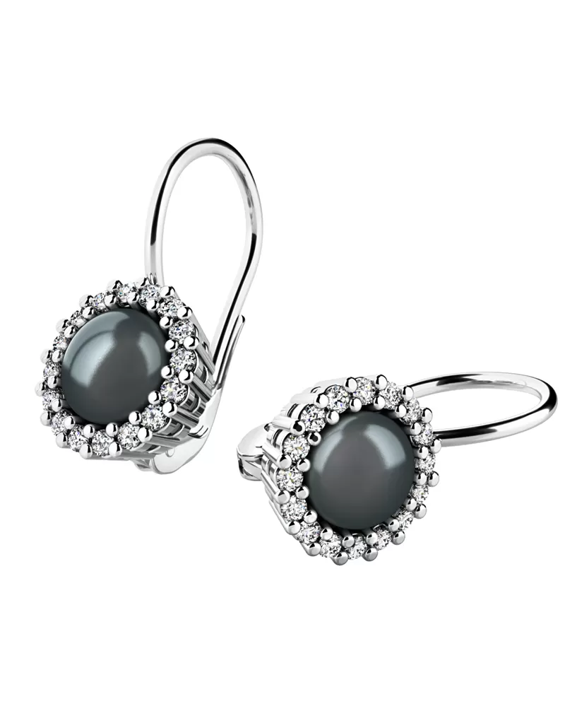 Perlové náušnice s diamantmi 10929-B-DIA-FW-Black