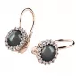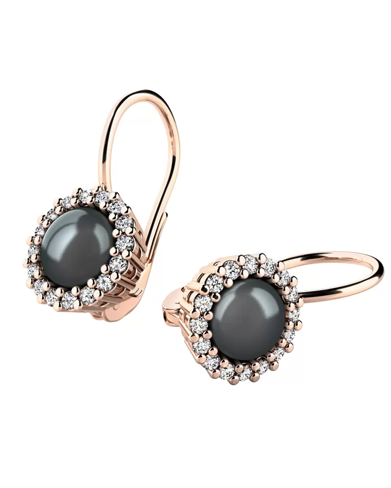 Nádherné dámské náušnice zdobené sladkovodními černými perlami a diamanty budou ideálním dárkem pro každou ženu. Náušnice jsou vyrobeny z růžového čtrnáctikarátového zlata - 585/1000 v lesklé povrchové úpravě. Perlu střeží dokola vsazené diamanty briliantového brusu, které jsou pevně uchyceny krapnami. Vsazování diamantů provádějí naši nejzkušenější mistři zlatníci ručně pod mikroskopem s přesností na 0,01mm a proto nehrozí vypadnutí kamínků jako to bývá u strojně vyráběných náušnic.