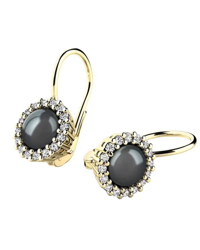 Nádherné dámské náušnice zdobené sladkovodními černými perlami a diamanty budou ideálním dárkem pro každou ženu. Náušnice jsou vyrobeny ze žlutého čtrnáctikarátového zlata - 585/1000 v lesklé povrchové úpravě. Perlu střeží dokola vsazené diamanty briliantového brusu, které jsou pevně uchyceny krapnami. Vsazování diamantů provádějí naši nejzkušenější mistři zlatníci ručně pod mikroskopem s přesností na 0,01mm a proto nehrozí vypadnutí kamínků jako to bývá u strojně vyráběných náušnic.