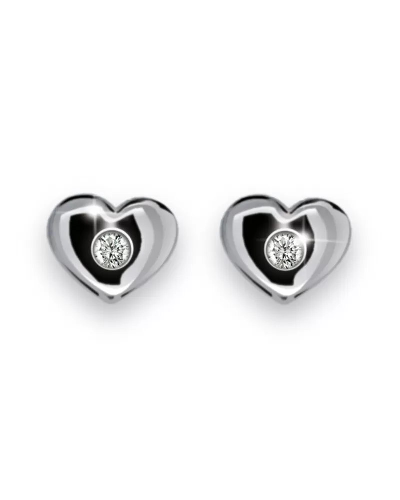 Roztomilé náušnice v tvare srdca potešia každú ženu. V náušniciach je vsadený jeden okrúhly diamant. Diamant je vybrúsený okrúhlym briliantovým brusom, ktorý zaisťuje maximálnu brilanciu vybrúsených facet, dokonale odráža svetlo a neuveriteľne žiari z každého uhla pohľadu!  Tieto nádherné, žiarivé náušnice sú vyrobené zo štrnásťkarátového zlata - 585/1000 v lesklej povrchovej úpravy. Náušnice sa zapínajú na skrutku.