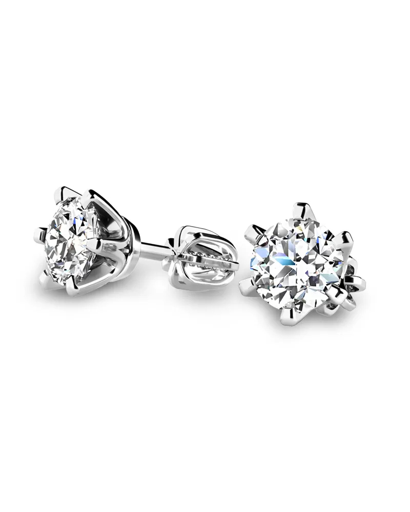 Nechte se uchvátit dokonalým třpytem prvotřídních diamantů vsazených do detailu propracovaných korunek. Náušnice jsou vyrobeny z bílého čtrnáctikarátového zlata - 585/1000 v lesklé povrchové úpravě. Náušnice se zapínají na šroubek. Do náušnic jsou vsazeny dva kulaté diamanty briliantového brusu, který zajišťuje maximální brilanci vybroušených facet, dokonale odráží světlo a diamanty krásně září z každého úhlu pohledu! Diamanty jsou pevně uchyceny do šestikrapnové korunky. Vsazování diamantů provádějí naši nejzkušenější mistři zlatníci ručně pod mikroskopem s přesností na 0,01mm a proto nehrozí vypadnutí kamínků jako to bývá u strojně vyráběných šperků. Náušnice působí elegantním a luxusním dojmem!