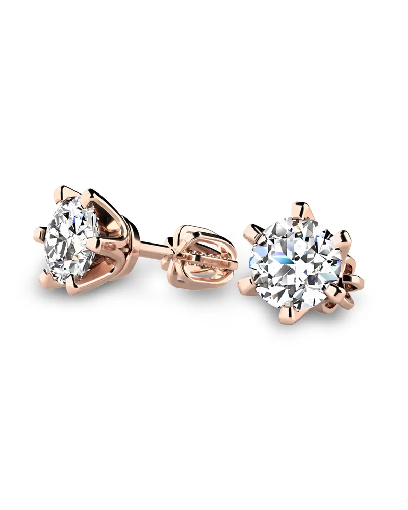 Nechte se uchvátit dokonalým třpytem prvotřídních diamantů vsazených do detailu propracovaných korunek. Náušnice jsou vyrobeny z růžového čtrnáctikarátového zlata - 585/1000 v lesklé povrchové úpravě. Náušnice se zapínají na šroubek. Do náušnic jsou vsazeny dva kulaté diamanty briliantového brusu, který zajišťuje maximální brilanci vybroušených facet, dokonale odráží světlo a diamanty krásně září z každého úhlu pohledu! Diamanty jsou pevně uchyceny do šestikrapnové korunky. Vsazování diamantů provádějí naši nejzkušenější mistři zlatníci ručně pod mikroskopem s přesností na 0,01mm a proto nehrozí vypadnutí kamínků jako to bývá u strojně vyráběných šperků. Náušnice působí elegantním a luxusním dojmem!