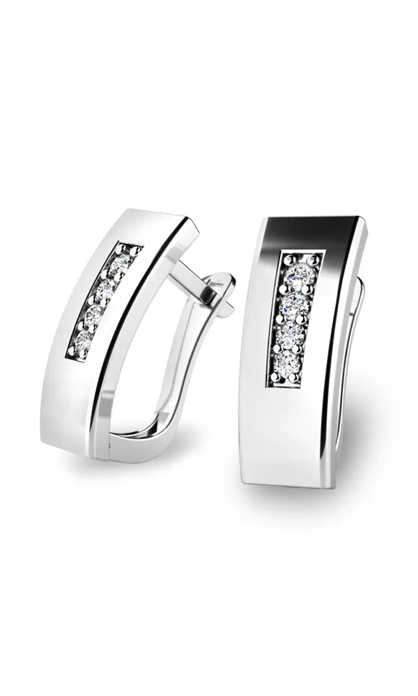Mate ráda moderní a trendy náušnice? Tyto jsou navíc zdobeny diamanty, které jsou vsazeny v řadě pod sebou uprostřed náušnice. Diamanty jsou v briliantovém brusu, díky kterému dokonale odráží světlo a neuvěřitelné září. Diamant je nejtvrdší přírodní nerost, který oplývá vynikajícími vlastnosti a proto se vyplatí do šperků s diamanty investovat. Takový šperk vám vydrží věčnost.