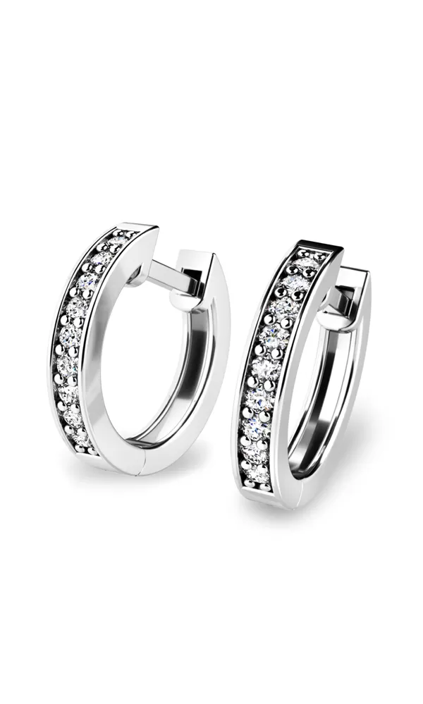 Náušnice kruhy patria medzi veľmi obľúbený šperk. Náušnice sú vhodné na každodenné nosenie aj na spoločenské akcie a pristanú každej žene. Tento model je zdobený osemnástimi diamantmi. Diamanty sú v briliantovom bruse, vďaka ktorému dokonale odráža svetlo a neuveriteľné september. Diamant je najtvrdší prírodný nerast, ktorý oplýva vynikajúcimi vlastnosťami a preto sa oplatí do šperkov s diamantmi investovať. Taký šperk vám vydrží večnosť.