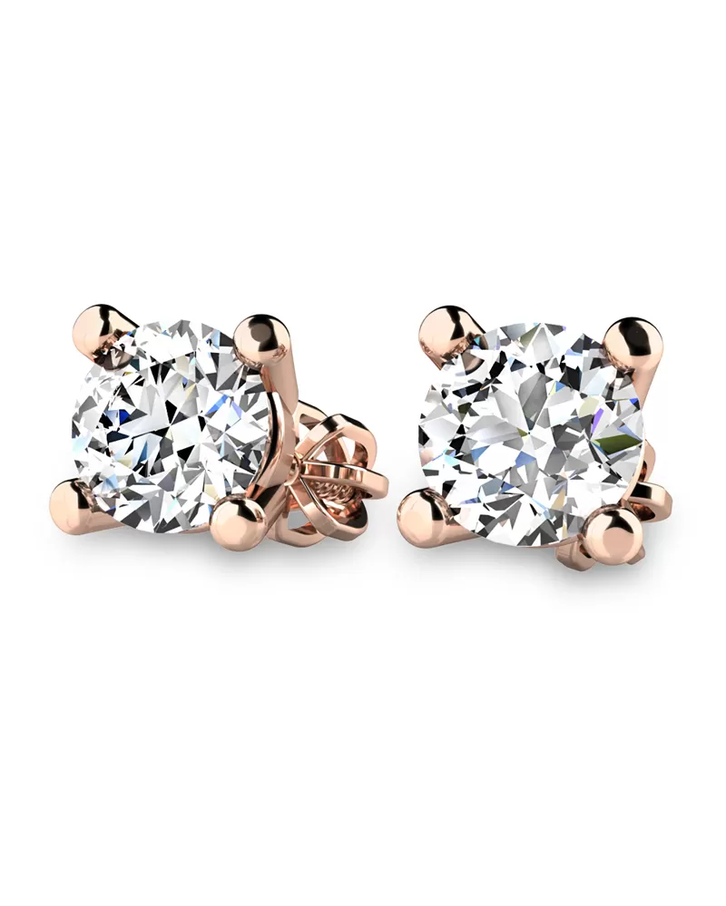 Dámské náušnice pecky jsou velmi oblíbené. V náušnicích je vsazený jeden kulatý diamant do pevné čtyřkrapnové korunky. Diamant je vybroušený kulatým briliantovým brusem, který zajišťuje maximální brilanci vybroušených facet, dokonale odráží světlo a neuvěřitelné září z každého úhlu pohledu!  Tyto nádherné, zářivé náušnice jsou vyrobeny z růžového čtrnáctikarátového zlata - 585/1000 v lesklé povrchové úpravě. Náušnice se zapínají na šroubek.