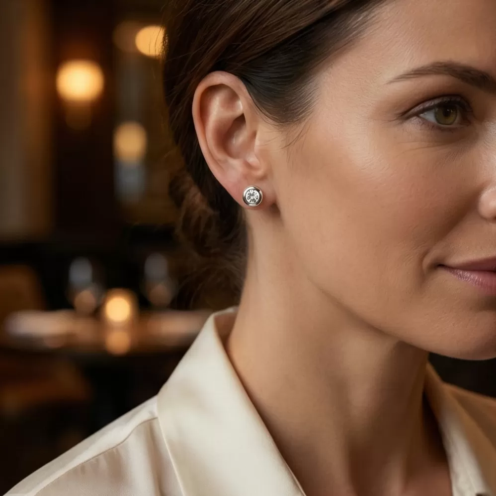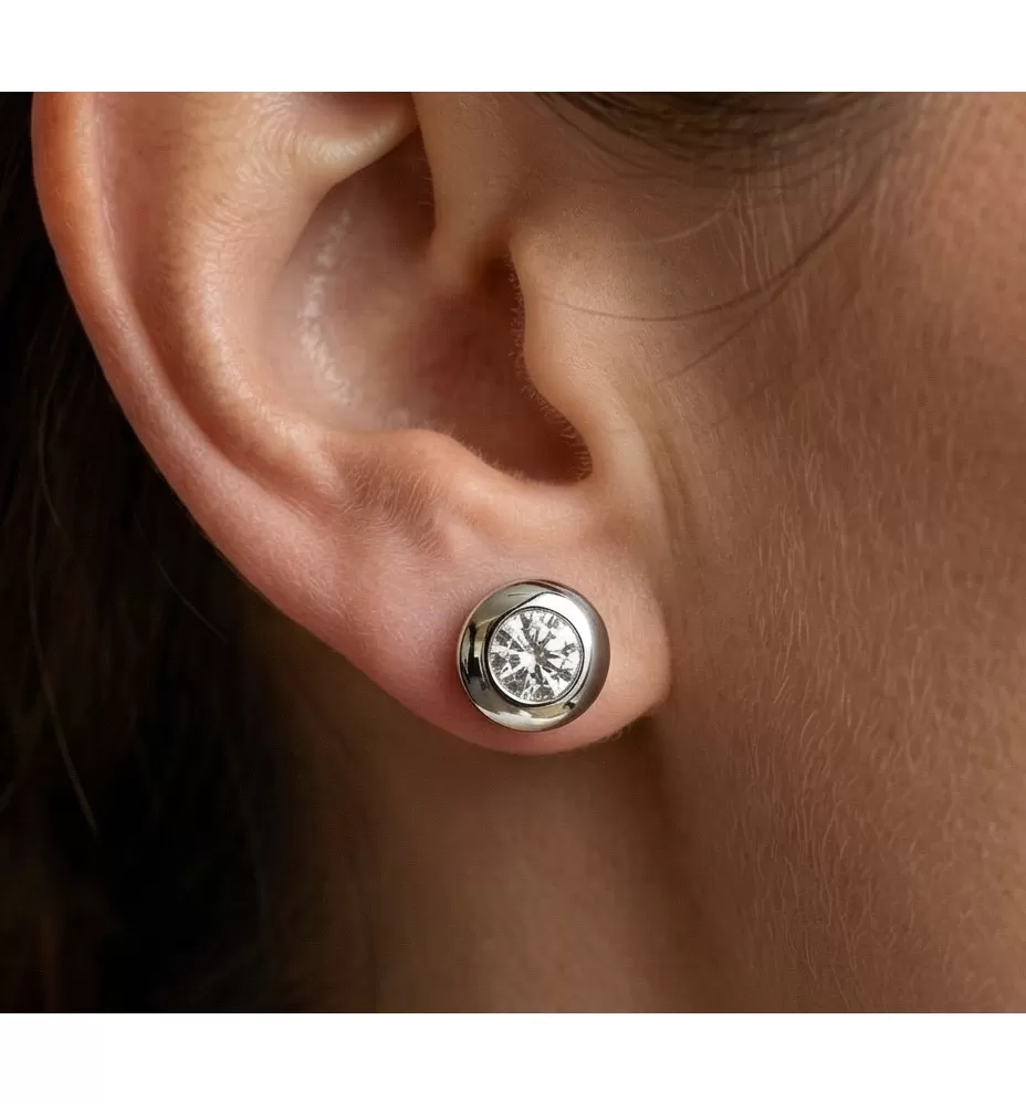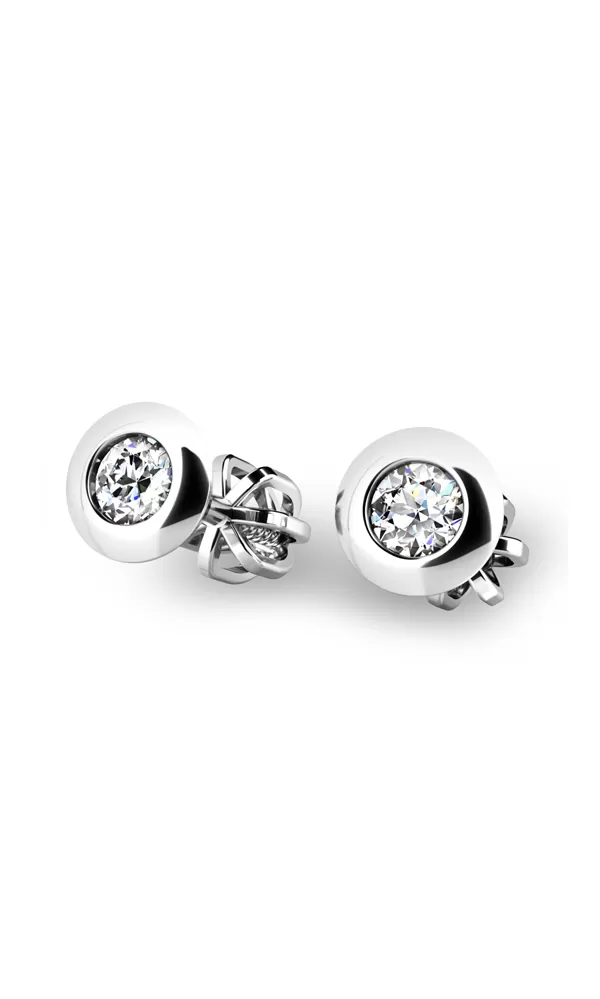 Klasický dizajn náušníc v elegantnej kombinácii lesklej obruby a diamantov . Tieto náušnice sú vyrobené z bieleho štrnásťkarátového zlata - 585/1000 a sú celé v lesklej povrchovej úprave. Náušnice sú zdobené dvoma diamantmi briliantového brusu. Vďaka precíznemu brúsu majú diamanty dokonalú brilanciu. Skvele odráža svetlo a september. Zapínanie náušníc je na skrutky a balóniky.