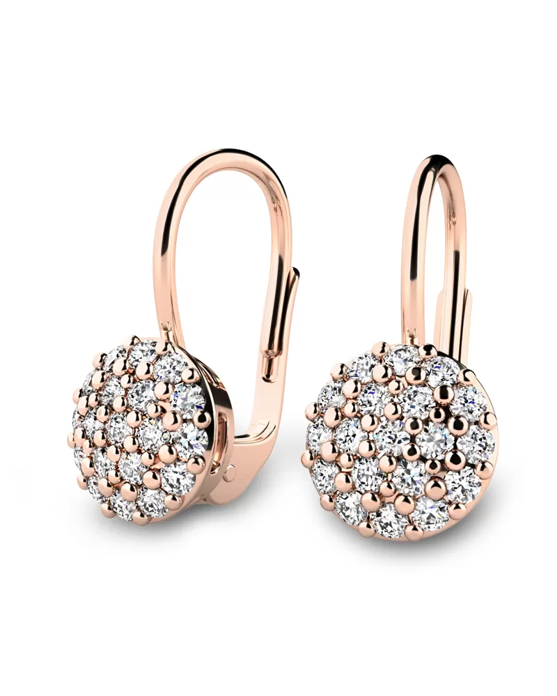 Tieto náušnice sú vhodné na každodenné nosenie a na spoločenské udalosti a vyhovujú každej žene! Sú vyrobené z červenej štrnástich -karatovej zlata - 585/1000 a všetky sú v lesklom povrchu. Každé náušnice zahŕňajú šestnásť okrúhlych diamantov brilantného strihu, ktorý poskytuje maximálnu brilanciu leštených aspektov, dokonale odráža svetlo a diamanty krásne lesk z každého pohľadu! Vďaka kompozícii a štýlovo čistej diamantovej vkladaniu prsteň vyniká v krásnej brilancii kameňov. Diamantové nastavenie vykonávajú naši najskúsenejší majstri ručne ručne pod mikroskopom s presnosťou 0,01 mm, a preto neexistuje riziko, že kamene padajú ako strojové šperky. Zahŕňajúce náušnice sú na klapke.