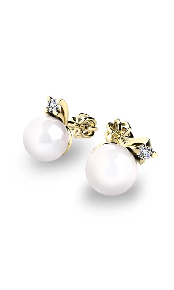 Tyto nádherné náušnice jsou vyrobeny ze žlutého čtrnáctikarátového zlata - 585/1000 v lesklé povrchové úpravě a zdobí je sladkovodní perly a diamanty. Diamanty jsou vybroušeny briliantovým brusem, který zajišťuje maximální brilanci vybroušených facet, dokonale odráží světlo a neuvěřitelně září z každého úhlu pohledu! Vsazování diamantů provádějí naši nejzkušenější mistři zlatníci ručně pod mikroskopem s přesností na 0,01mm a proto nehrozí vypadnutí kamínků jako to bývá u strojně vyráběných náušnic.