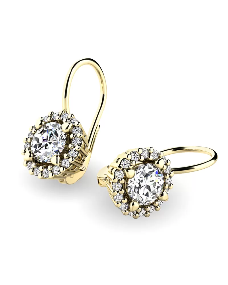 Nádherné luxusní dámské náušnice osázené diamanty budou ideálním dárkem pro každou ženu. Náušnice jsou vyrobeny ze žlutého čtrnáctikarátového zlata - 585/1000 v lesklé povrchové úpravě. Vsazené diamanty jsou vybroušeny dokonalým briliantovým brusem, díky kterému dokonale odráží světlo a jejich brilance neuvěřitelné září z každého úhlu pohledu!  Všechny diamanty jsou pevně uchyceny krapnami. Vsazování diamantů provádějí naši nejzkušenější mistři zlatníci ručně pod mikroskopem s přesností na 0,01mm a proto nehrozí vypadnutí kamínků jako to bývá u strojně vyráběných náušnic. Celé náušnice působí dokonalým a luxusním dojmem!