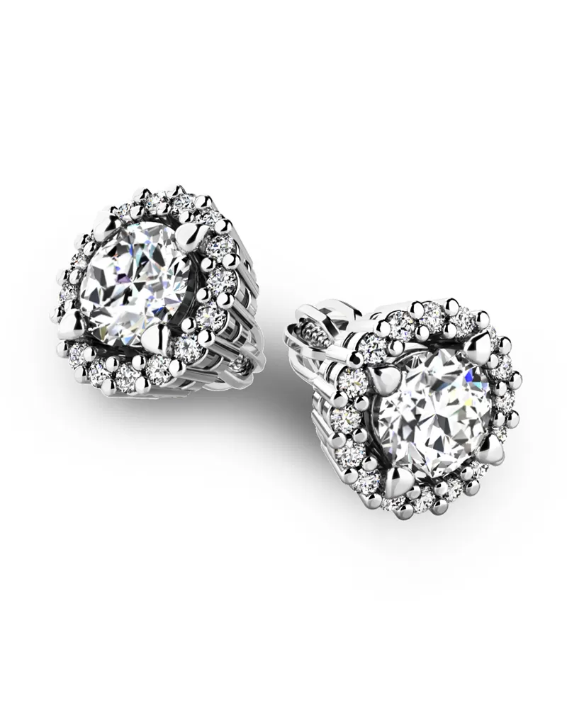 Nádherné luxusní dámské náušnice pecky osázené diamanty budou ideálním dárkem pro každou ženu. Náušnice jsou vyrobeny z bílého čtrnáctikarátového zlata - 585/1000 v lesklé povrchové úpravě. Vsazené diamanty jsou vybroušeny dokonalým briliantovým brusem, díky kterému dokonale odráží světlo a jejich brilance neuvěřitelné září z každého úhlu pohledu! Všechny diamanty jsou pevně uchyceny krapnami. Vsazování diamantů provádějí naši nejzkušenější mistři zlatníci ručně pod mikroskopem s přesností na 0,01mm a proto nehrozí vypadnutí kamínků jako to bývá u strojně vyráběných náušnic. Celé náušnice působí dokonalým a luxusním dojmem! Náušnice se zapínají na šroubek. Šroubek pro balónek je umístěný cca 2 mm pod horní okraj náušnice a tedy krásně zakrývá dírku v uchu.