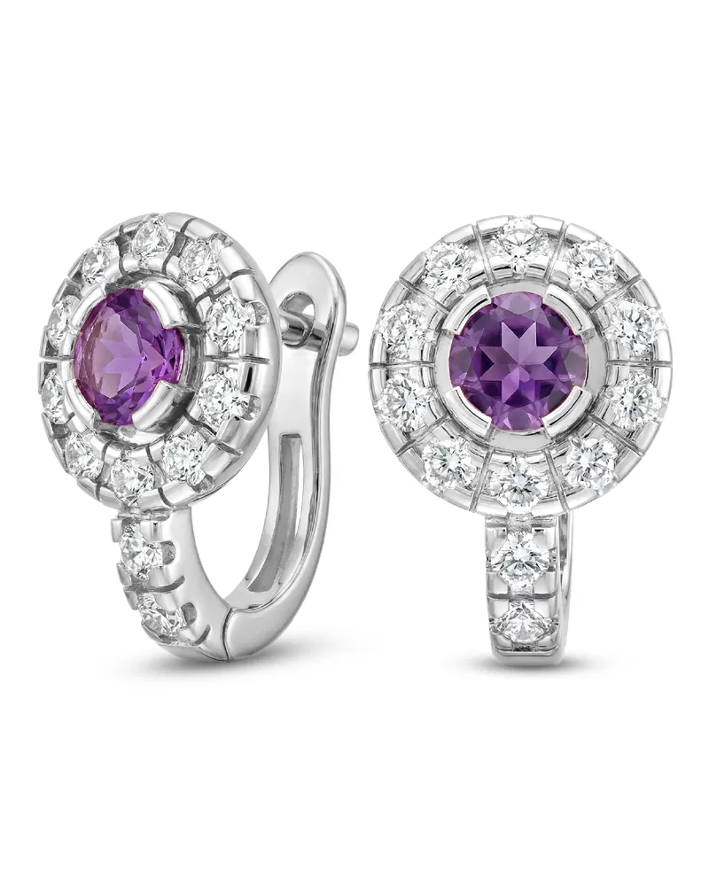 Náušnice biele zlato 585/1000, prírodné diamanty a ametysty, 109015-B-AME