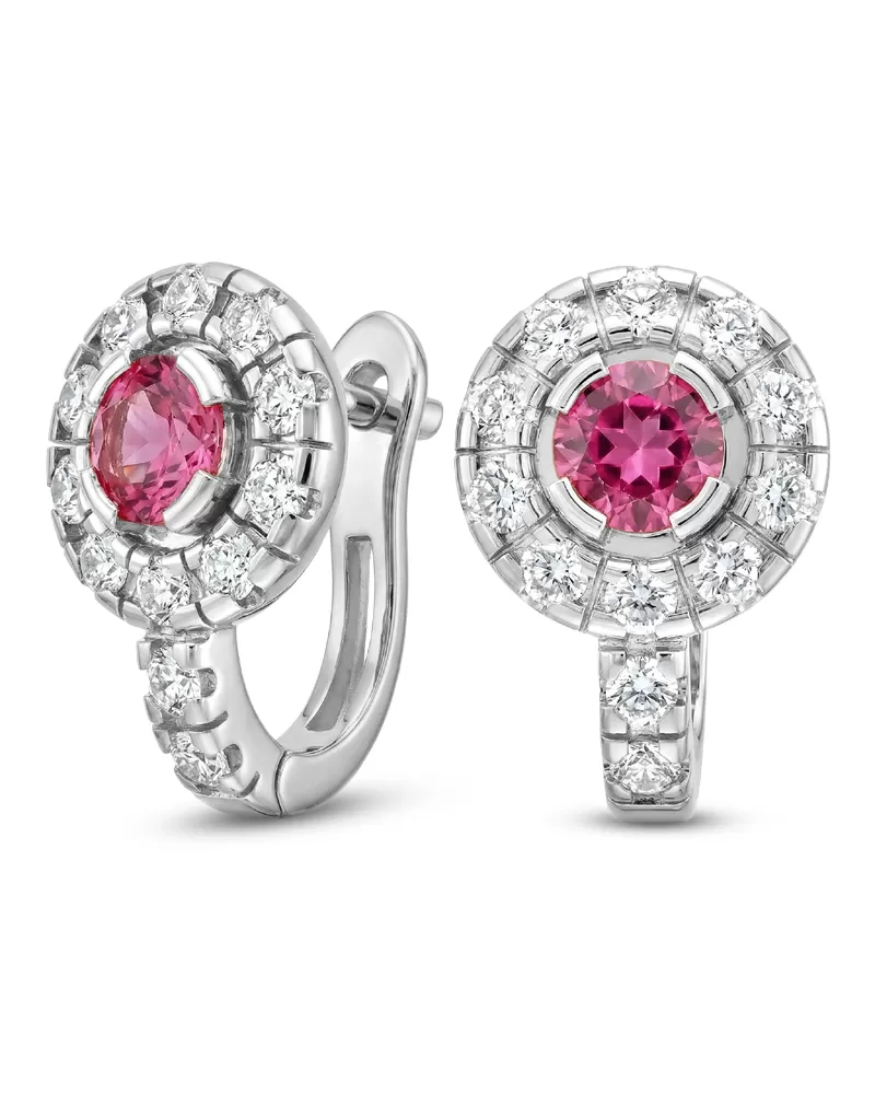 Náušnice typu "podkovičky" patria medzi veľmi obľúbené typy náušníc, náušnice sú vhodné na každodenné nosenie aj na spoločenské akcie a pristanú každej žene! Sú vyrobené z bieleho štrnásťkarátového zlata - 585/1000 v lesklej povrchovej úprave. V náušniciach je vsadených "do krapničiek" dvadsaťštyri menších diamantov a dva väčšie centrálne turmalíny. Všetky kamene sú vybrúsené okrúhlym briliantovým brusom, ktorý zaisťuje maximálnu brilanciu vybrúsených facet a krásne žiari zo všetkých uhlov pohľadu! Vsadzovanie diamantov a drahokamov vykonávajú naši najskúsenejší majstri zlatníci ručne pod mikroskopom s presnosťou na 0,01 mm a preto nehrozí vypadnutie diamantov ako to býva pri strojne vyrábaných šperkoch. Náušnice sú stredne veľké, na uchu vyzerajú elegantne a prirodzene a vďaka skladbe a štýlovo čistému vsadeniu diamantov vynikajú krásnou brilanciou kameňov!