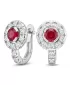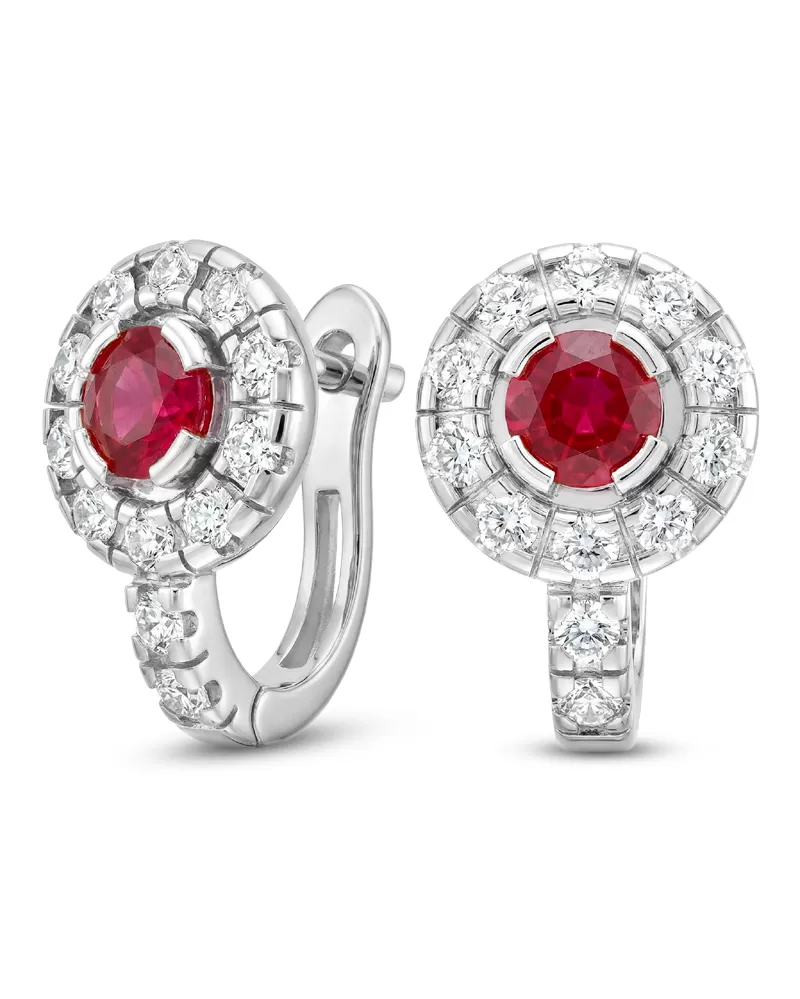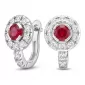 Náušnice typu "podkovičky" patria medzi veľmi obľúbené typy náušníc, náušnice sú vhodné na každodenné nosenie aj na spoločenské akcie a pristanú každej žene! Sú vyrobené z bieleho štrnásťkarátového zlata - 585/1000 v lesklej povrchovej úprave. V náušniciach je vsadených "do krapničiek" dvadsaťštyri menších diamantov a dva väčšie centrálne rubíny. Všetky kamene sú vybrúsené okrúhlym briliantovým brusom, ktorý zaisťuje maximálnu brilanciu vybrúsených facet zo všetkých uhlov pohľadu! Vsadzovanie diamantov vykonávajú naši najskúsenejší majstri zlatníci ručne pod mikroskopom s presnosťou na 0,01 mm a preto nehrozí vypadnutie diamantov ako to býva pri strojne vyrábaných šperkoch. Náušnice sú stredne veľké, na uchu vyzerajú elegantne a prirodzene a vďaka skladbe a štýlovo čistému vsadeniu diamantov vynikajú krásnou brilanciou kameňov!