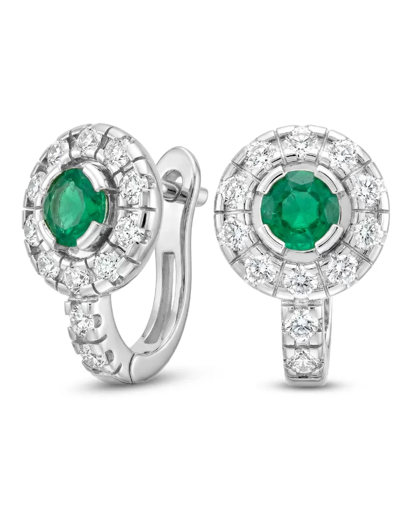 Náušnice biele zlato 585/1000, prírodné diamanty a smaragdy, 109015-B-SMAR